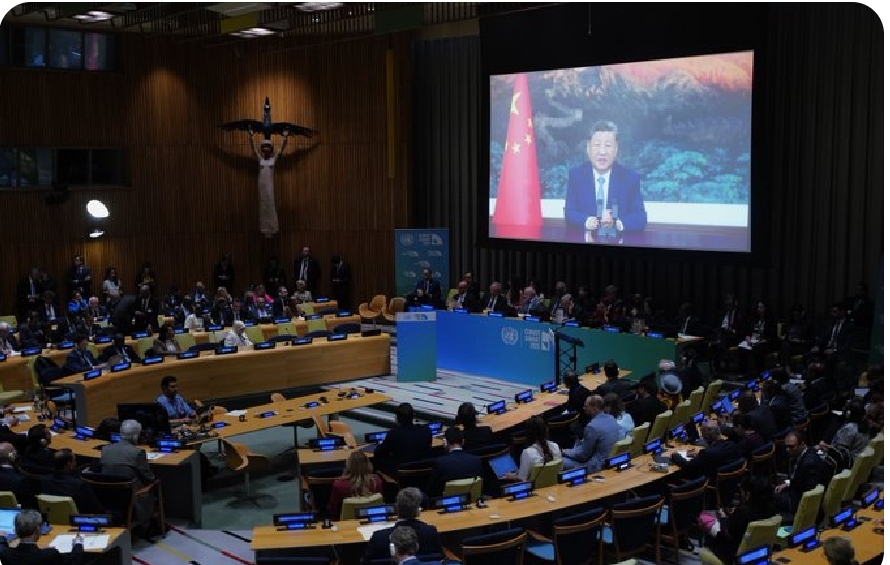 اقوام متحدہ کی جنرل اسمبلی کے اجلاس کے موقع پر اقوام متحدہ کی سیکرٹری جنرل انتونیو گوترس اور برازیل کے صدر کی طرف سے منعقدہ کلائمیٹ سمٹ سے ورچوئل خطاب میں صدر شی جن پنگ کا کہنا تھا کہ ماحولیاتی تبدیلیوں کی وجہ سے بڑھتے چیلنجز ایک حقیقت ہیں،ترقی یافتہ ممالک کو کاربن گیسوں کے اخراج میں کمی کے حوالے سے جامع اقدامات کرنے چاہئیں ، ماحول تبدیلیوں سے پیدا ہونے والی صورتحال سے نمٹنے کے لیے اجتماعی اقدامات کرنا ہوں گے۔