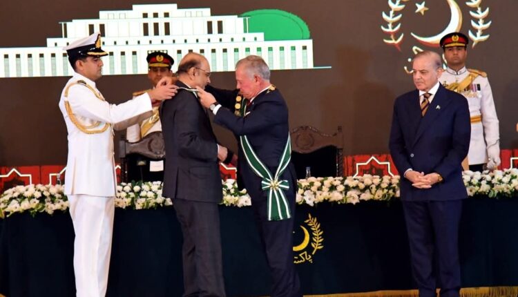 تقریب میں وزیراعظم شہباز شریف، چیئرمین سینیٹ سید یوسف رضا گیلانی، آرمی چیف فیلڈ مارشل سید عاصم منیر، فضائیہ اور بحریہ کے سربراہان، کابینہ اراکین اور سفارتی کور کے نمائندے شریک ہوئے۔