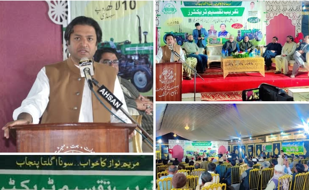 تلہ گنگ: وزیراعلیٰ پنجاب مریم نواز شریف کے ہائی پاور گرین ٹریکٹرز پروگرام کے تحت ضلع تلہ گنگ میں قرعہ اندازی کے ذریعے منتخب ہونے والے 62 کاشتکاروں میں جدید زرعی ٹریکٹرز کی تقسیم کی تقریب مقامی مارکی میں منعقد ہوئی۔ اس پُروقار تقریب میں زراعت کے افسران، منتخب نمائندگان، سماجی شخصیات اور بڑی تعداد میں کسان شریک ہوئے۔