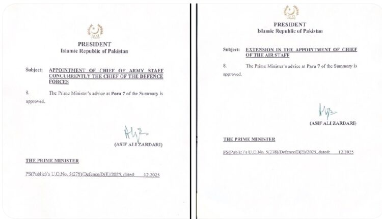 صدر نے آرمی چیف اور چیف آف ڈیفنس فورسز کی تقرری، ائیر چیف کی توسیع کی منظوری دے دی