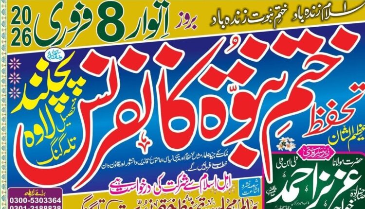 تلہ گنگ: پچنندمیں عظیم الشان تحفظ ختمِ نبوت کانفرنس آج ہوگی