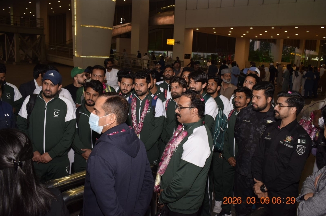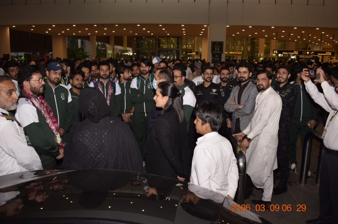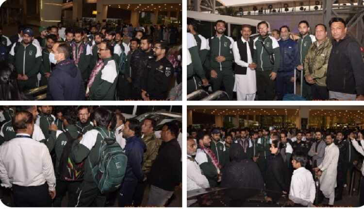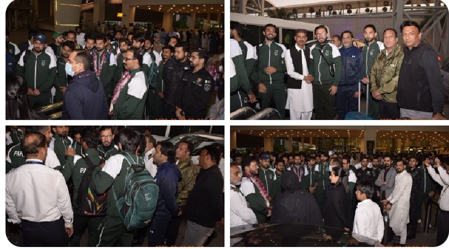 پاکستان ہاکی فیڈریشن کے عہدیداروں، سابق قومی کھلاڑیوں، امپائرز اور شائقین کی بڑی تعداد نے ٹیم کا خیرمقدم کیا اور کھلاڑیوں کو پھولوں کے ہار پہنائے۔