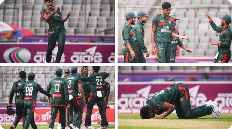 بنگلادیش کی جانب سے ناہید رانا نے شاندار بولنگ کا مظاہرہ کرتے ہوئے 24 رنز دے کر 5 کھلاڑیوں کو آؤٹ کیا، جو ان کے ون ڈے کیریئر کی بہترین کارکردگی ہے۔ مہدی حسن میراز نے بھی 29 رنز کے عوض 3 وکٹیں حاصل کیں۔