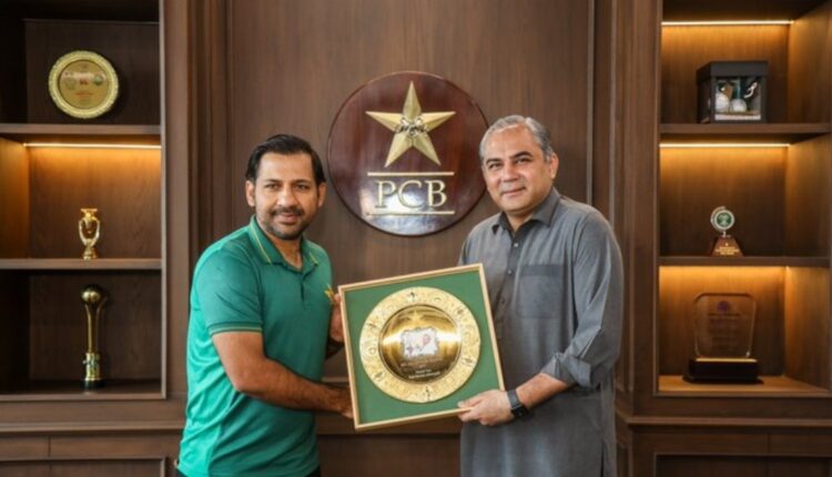 قومی کرکٹ ٹیم کے سابق کپتان سرفراز احمد کی محسن نقوی سے ملاقات، چیئرمین پی سی بی نے شیلڈ پیش کی