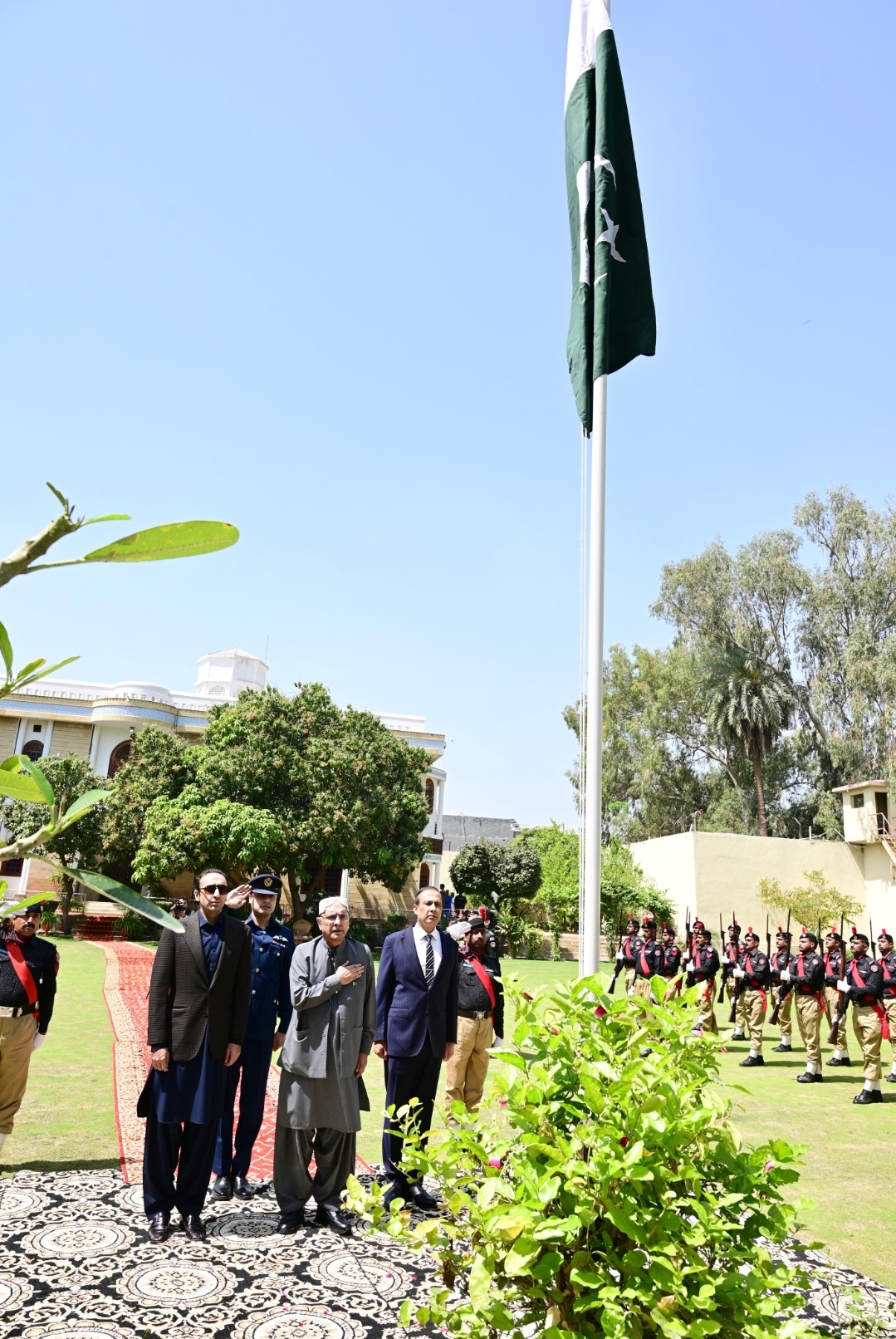 تقریب میں سندھ پولیس کے چاق و چوبند دستے نے صدرِ مملکت کو سلامی پیش کی جبکہ قومی ترانہ بھی بجایا گیا، جس سے فضا حب الوطنی کے جذبات سے گونج اٹھی۔