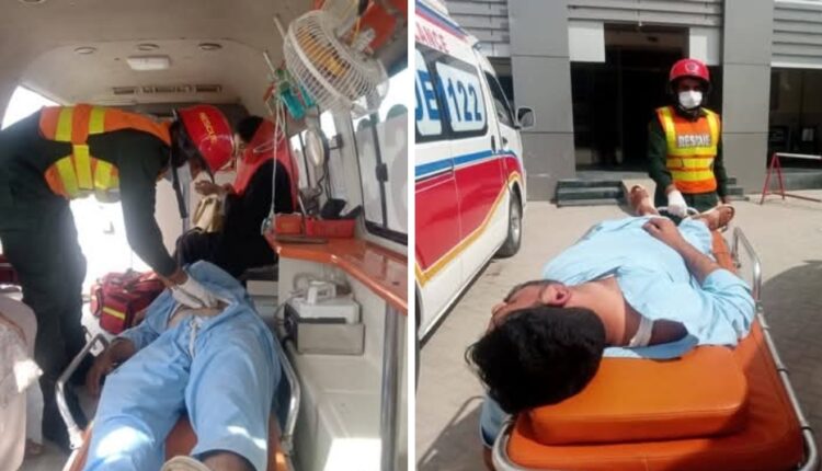 ریسکیو اہلکاروں نے بروقت موقع پر پہنچ کر جائے حادثہ کو محفوظ بنایا اور زخمی شخص کو فوری طور پر ابتدائی طبی امداد فراہم کی۔ زخمی کی شناخت 27 سالہ عدیل ولد خالق کے نام سے ہوئی ہے، جو ملتان خورد کا رہائشی بتایا جاتا ہے۔
