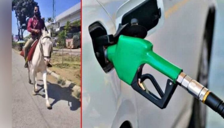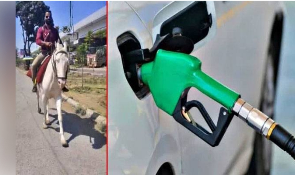پٹرول قلت سے تنگ شہری، بینک ملازم گھوڑے پر دفتر پہنچ گیا
