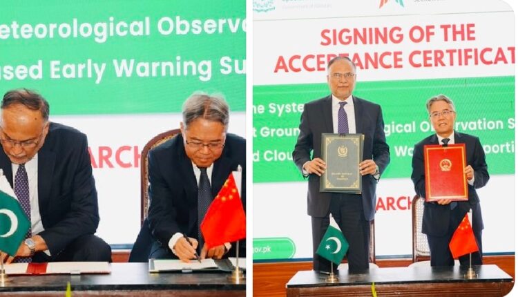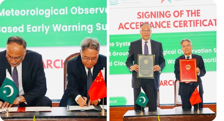 وفاقی وزیر احسن اقبال اور چین کے سفیر جیانگ زائیڈونگ نے سی پیک تقریب میں سولر ہوم سسٹمز، جدید موسمیاتی اسٹیشنز اور کلاؤڈ بیسڈ ابتدائی وارننگ سسٹم کے لیے قبولیت کے سرٹیفکیٹ پر بھی دستخط کیے، جو دونوں ممالک کے درمیان ماحولیاتی اور تکنیکی تعاون کا اہم مظہر ہے۔
