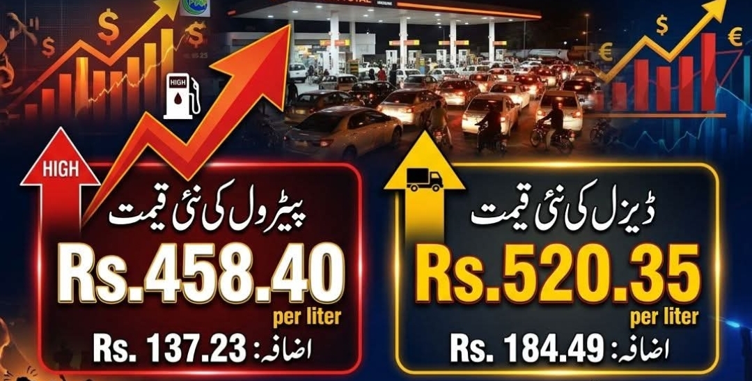 پٹرولیم مصنوعات کی قیمتوں میں بڑا اضافہ، پٹرول 458 روپے 40 پیسے اور ڈیزل 520 روپے 35 پیسے فی لیٹر مقرر