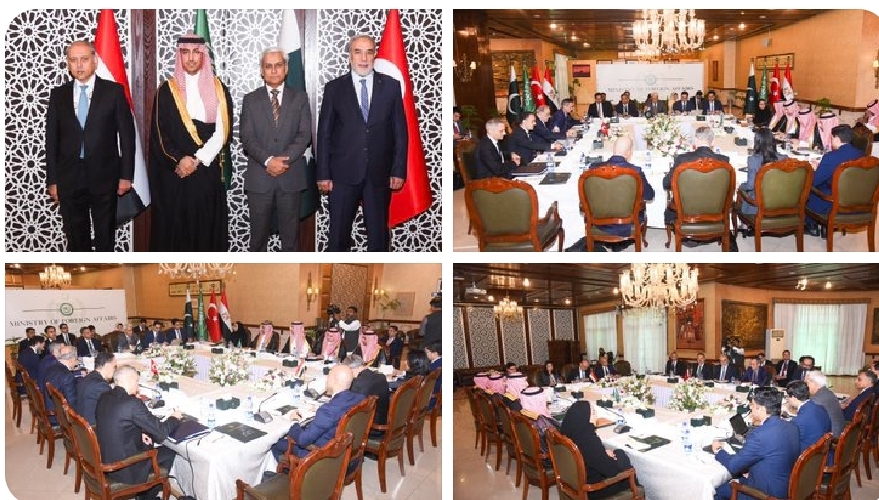 اسلام آباد میں پاکستان، سعودی عرب، ترکیہ اور مصر کے وزرائے خارجہ کے مشاورتی اجلاس کے تسلسل میں متعلقہ ممالک کی وزارتِ خارجہ کے سینئر حکام کا اجلاس منگل کو منعقد ہوا۔