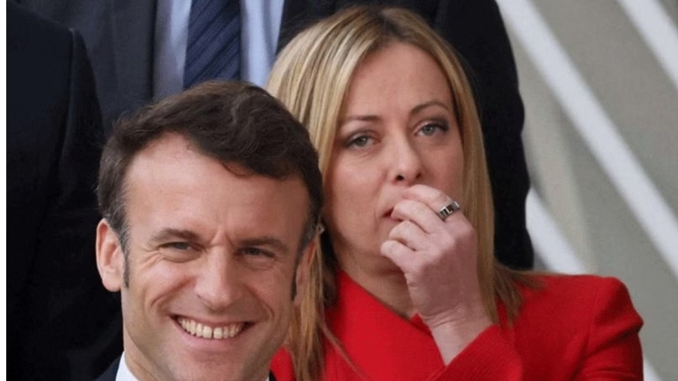 پیرس:فرانس کے صدر میکرون اور اٹلی وزیراعظم کی میلونی کی ملاقات، ایک لمحہ سوشل میڈیا پر چھا گیا۔